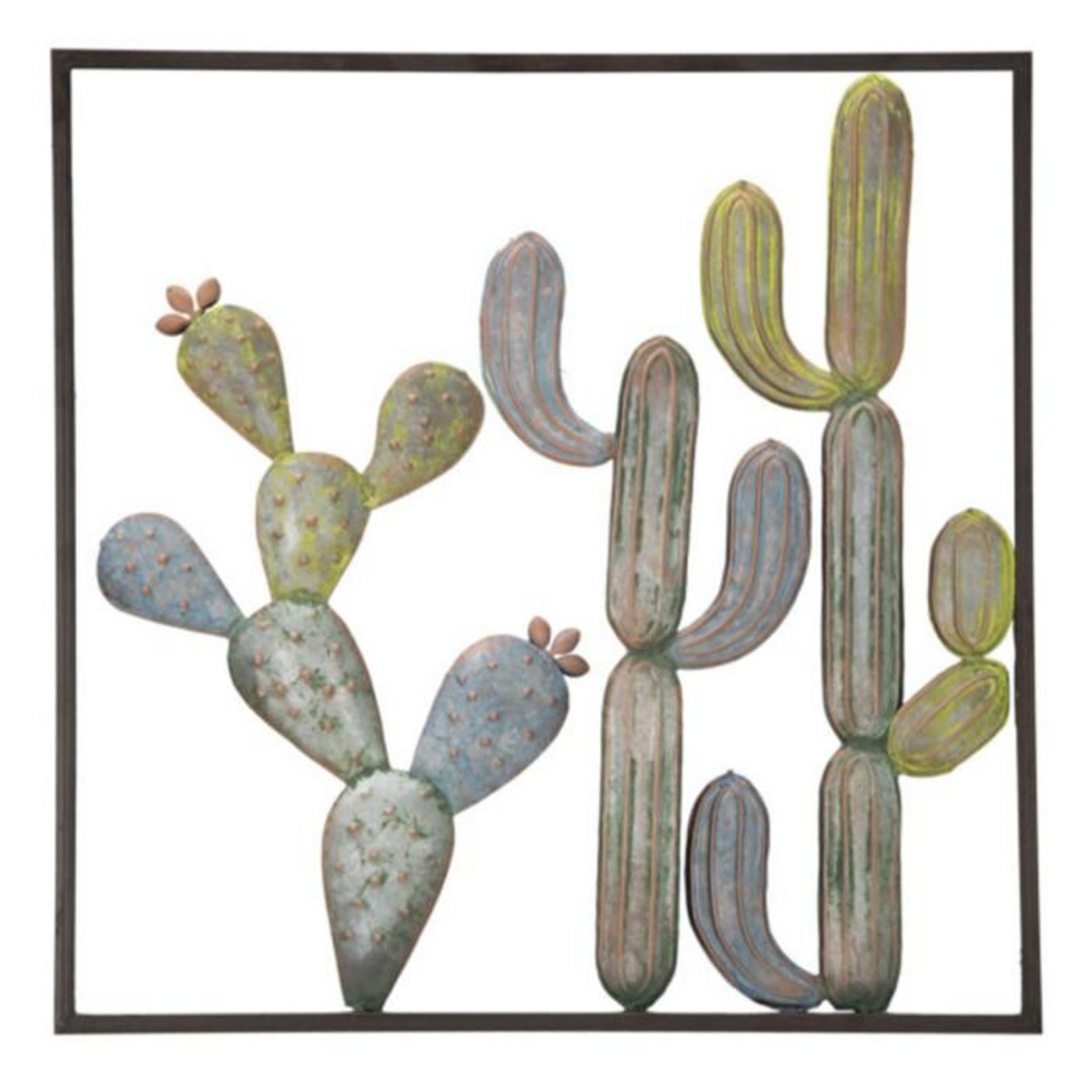 Déco Murale Encadrée en Métal Cactus 50cm Multicolore