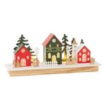 Informations Techniques : Dimensions : L. 44 x l. 12 x H. 18,5 cm Matières : 95% Bois (Peuplier) & 5% Bois (Pin) Spécificités : Déco & Festif Village à LED Sur socle Poids : 0,47 kg Couleur : Multicolore