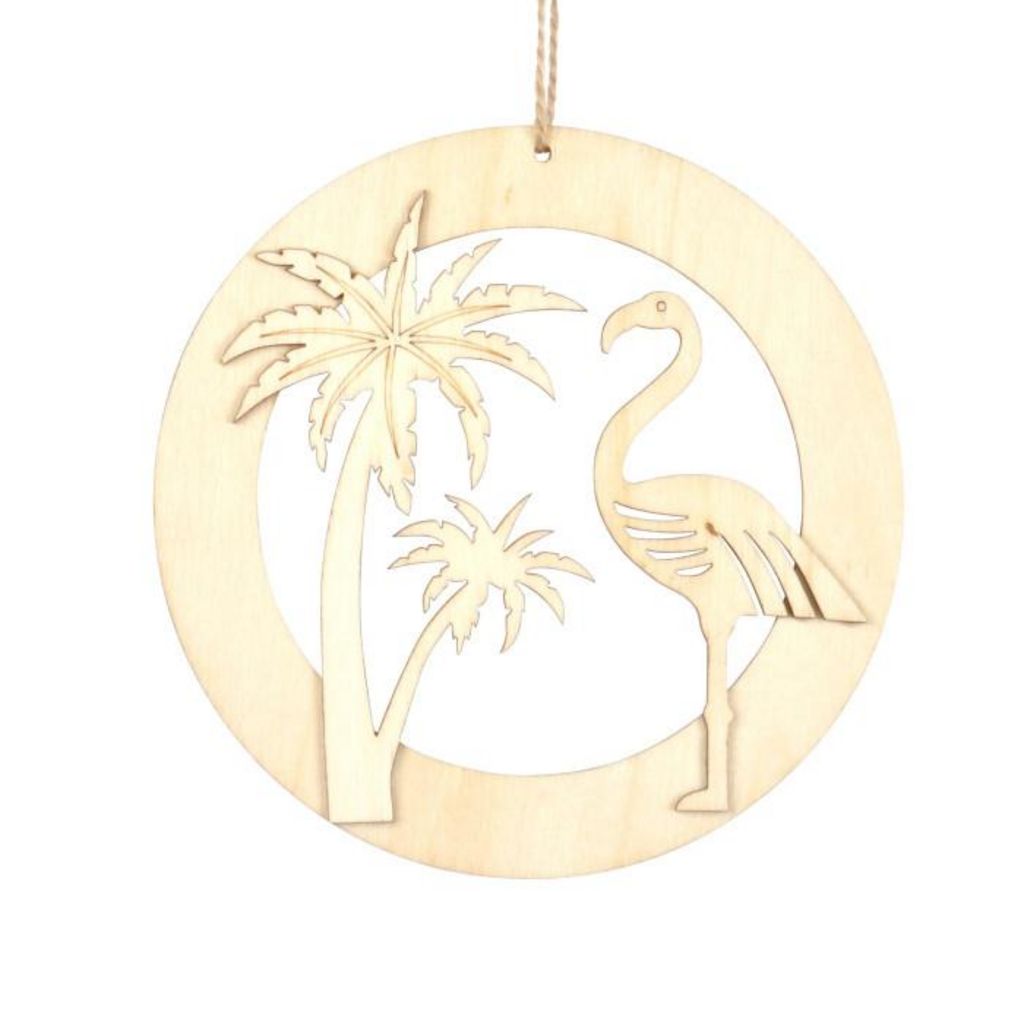 Décoration en Bois Flamant & Palmier 14cm Naturel