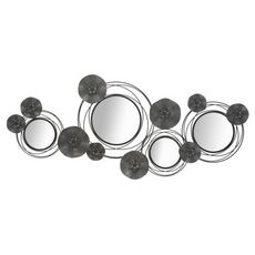 Décoration Murale 4 Miroirs Ronds 117cm Noir & Gris