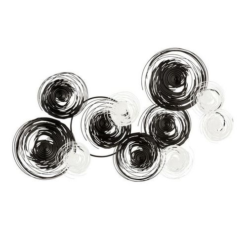 Informations Techniques : Dimensions : L. 140 x l. 90 x H. 10 cm Matière : Métal Spécificités : Tendance & Moderne Décoration Murale Forme Cercles Poids : 4,9 kg Couleur : Noir & Blanc