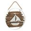 Informations Techniques : Dimensions : L. 25 x l. 3 x H. 25 cm Matières : 60% Bois (Paulownia) & 40% Métal Spécificités : Déco & Pratique Décoration murale ronde À suspendre Design voilier en métal Poids : 0,58 kg Couleur : Naturel & Blanc