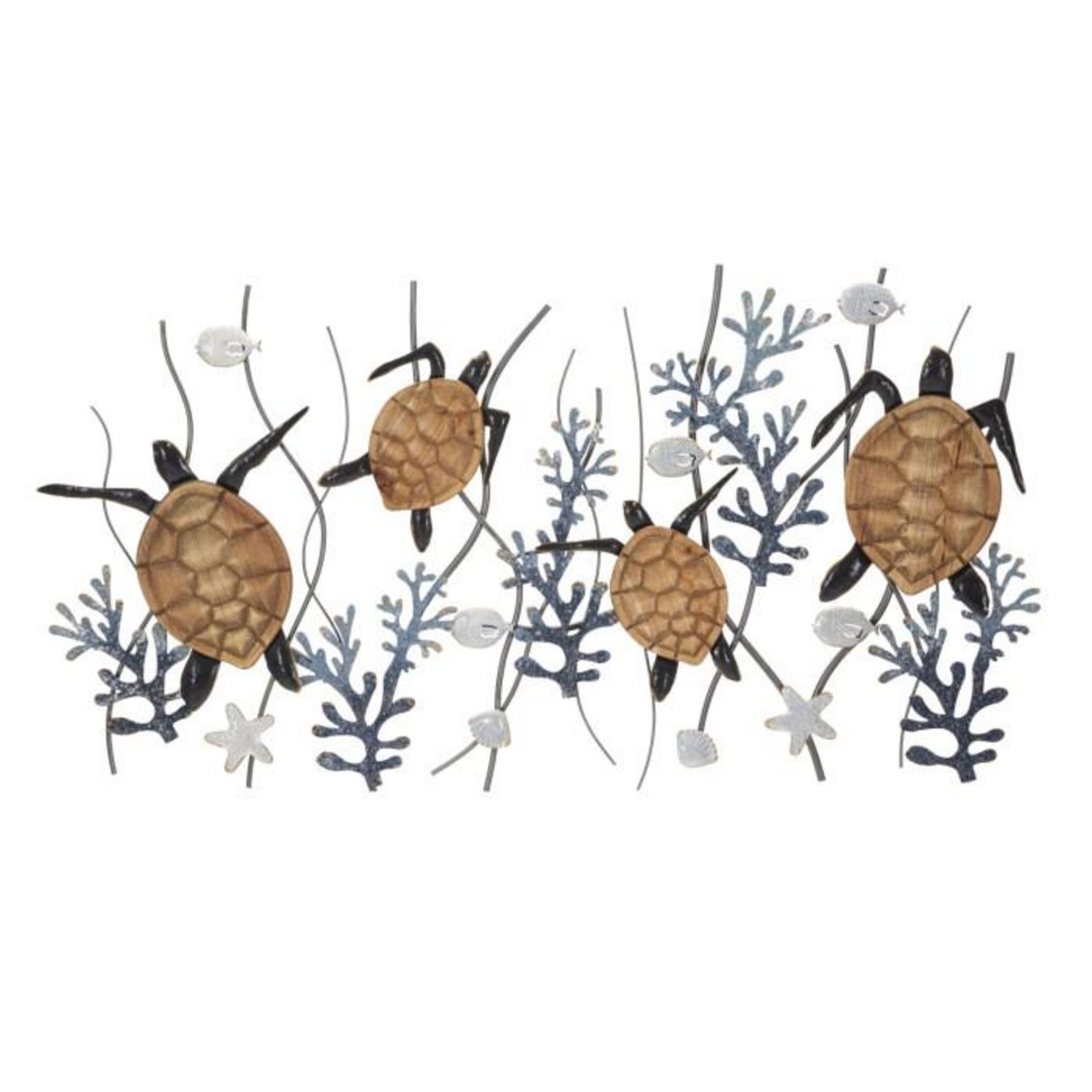Informations Techniques : Dimensions : L. 132,7 x l. 5,7 x H. 69,9 cm Matières : Métal & MDF Spécificités : Originale & Robuste Déco murale Design tortues et coraux Poids : 3,22 kg Couleur : Multicolore
