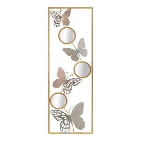 Informations Techniques : Dimensions : L. 31 x l. 2 x H. 90 cm Matière : Métal Spécificités : Élégante & Robuste Déco murale encadrée Design papillon Avec 3 miroirs ronds Poids : 1,38 kg Couleur : Multicolore