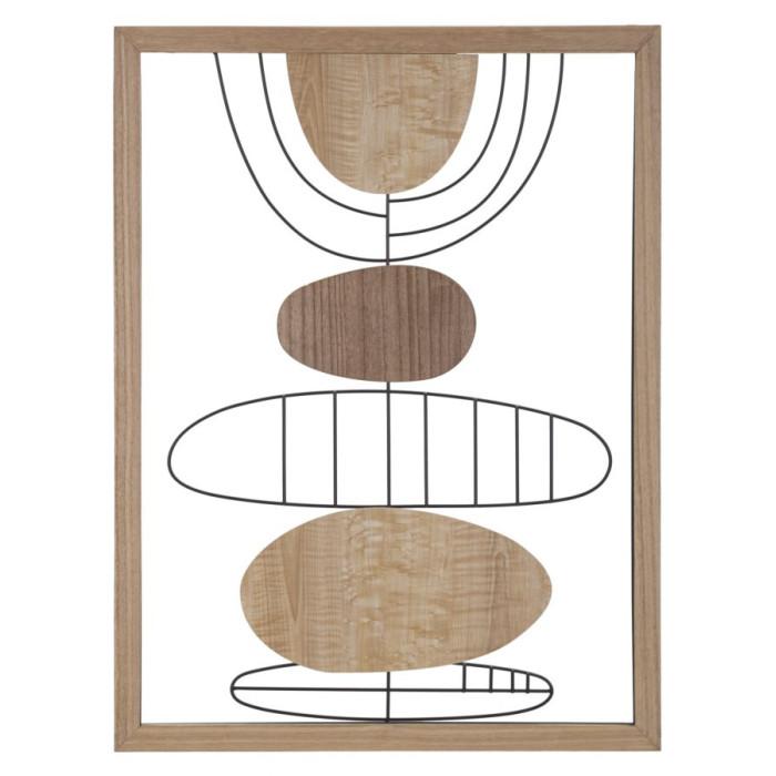 Informations Techniques : Dimensions : L. 60 x l. 2 x H. 80 cm Matières : MDF & Métal Spécificités : Robuste & Abstraite Déco murale encadrée Design géométrique Poids : 1,8 kg Couleur : Naturel & Noir