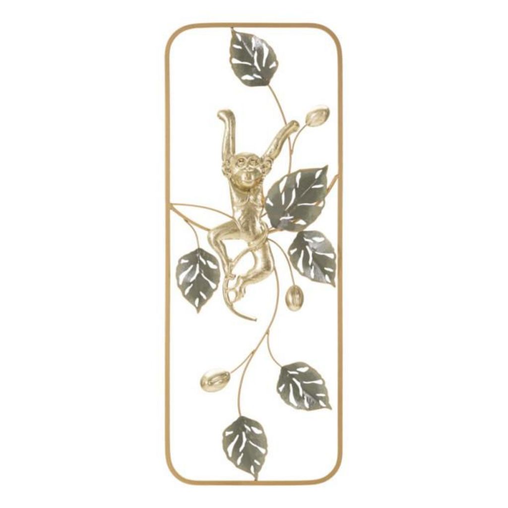 Informations Techniques : Dimensions : L. 28,6 x l. 3,8 x H. 74,3 cm Matière : Métal Spécificités : Colorée & Robuste Déco murale encadrée Design singe et feuilles Poids : 0,62 kg Couleur : Or & Vert