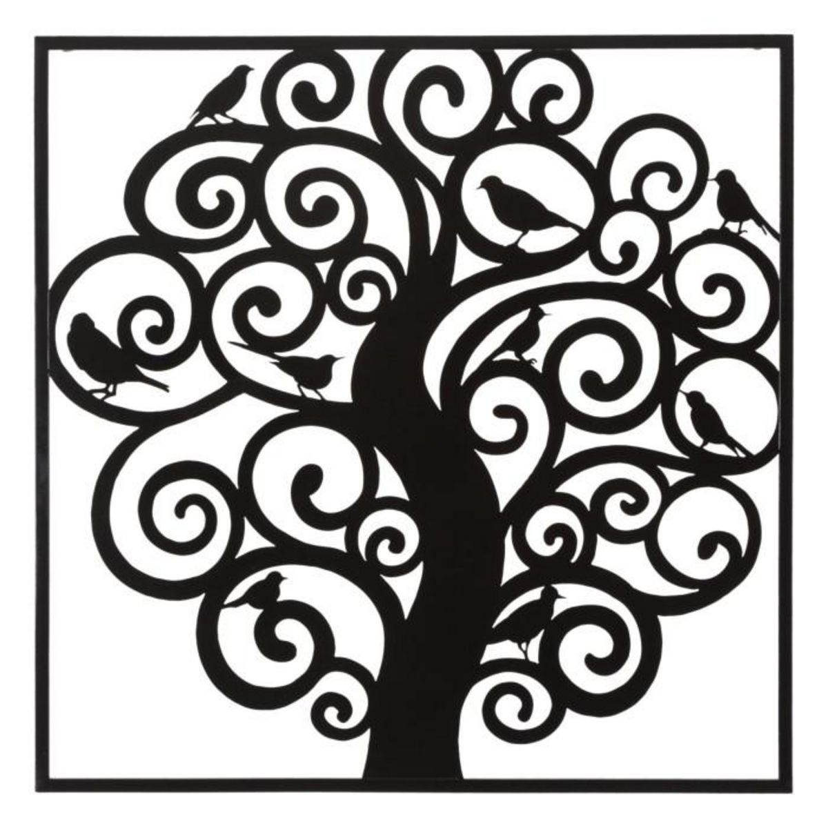 Informations Techniques : Dimensions : L. 70 x l. 1 x H. 70 cm Matière : Métal Spécificités : Élégante & Robuste Déco murale encadrée Design arbre Poids : 1,85 kg Couleur : Noir