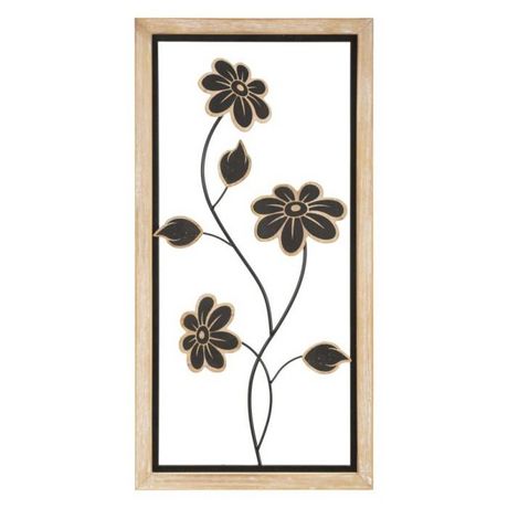 Informations Techniques : Dimensions : L. 30 x l. 2,5 x H. 60 cm Matières : Métal & MDF Spécificités : Élégante & Robuste Déco murale encadrée Design fleurs Poids : 0,9 kg Couleur : Naturel & Noir
