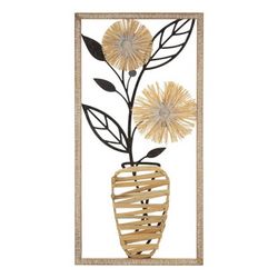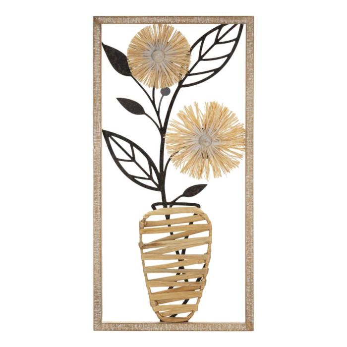Informations Techniques : Dimensions : L. 40 x l. 3 x H. 80 cm Matières : Métal, Raphia & MDF Spécificités : Originale & Robuste Déco murale encadrée Design vase avec fleurs Forme rectangulaire Poids : 1,15 kg Couleur : Multicolore