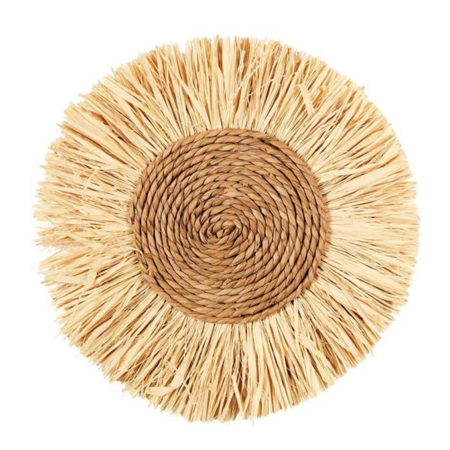 Informations Techniques : Dimensions : D. 37 cm Matières : 55% Raphia, 20% Herbes Végétales, 20% MDF, 5% Fer & 5% Métal Spécificités : Chic & Tendance Décoration Murale Forme Ronde Style Bohème Poids : 0,25 kg Couleur : Naturel