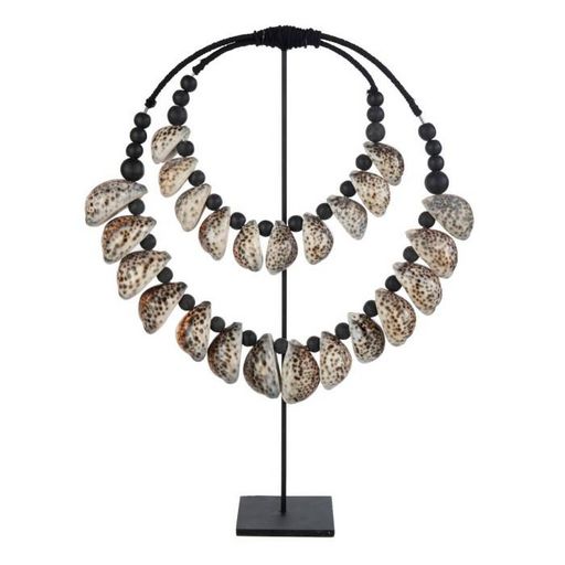 Informations Techniques : Dimensions : L. 45 x l. 10 x H. 60 cm Matières : 80% Coquillage, 10% Coton & 10% Métal Spécificités : Déco & Original Collier de coquillages Sur pied Poids : 1,96 kg Couleur : Noir