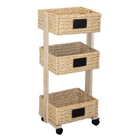 Desserte de Cuisine 3 Paniers Tressés 79cm Beige