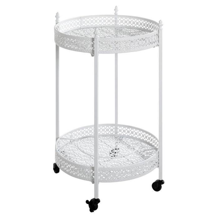 Informations Techniques : Dimensions : D. 45 x H. 74 cm Matière : Métal Spécificités : Pratique & Tendance Desserte de Cuisine Forme Ronde Sur Roulettes Effet Laqué Livré non monté Nombre de colis : 1 Poids : 4,41 kg Couleur : Blanc