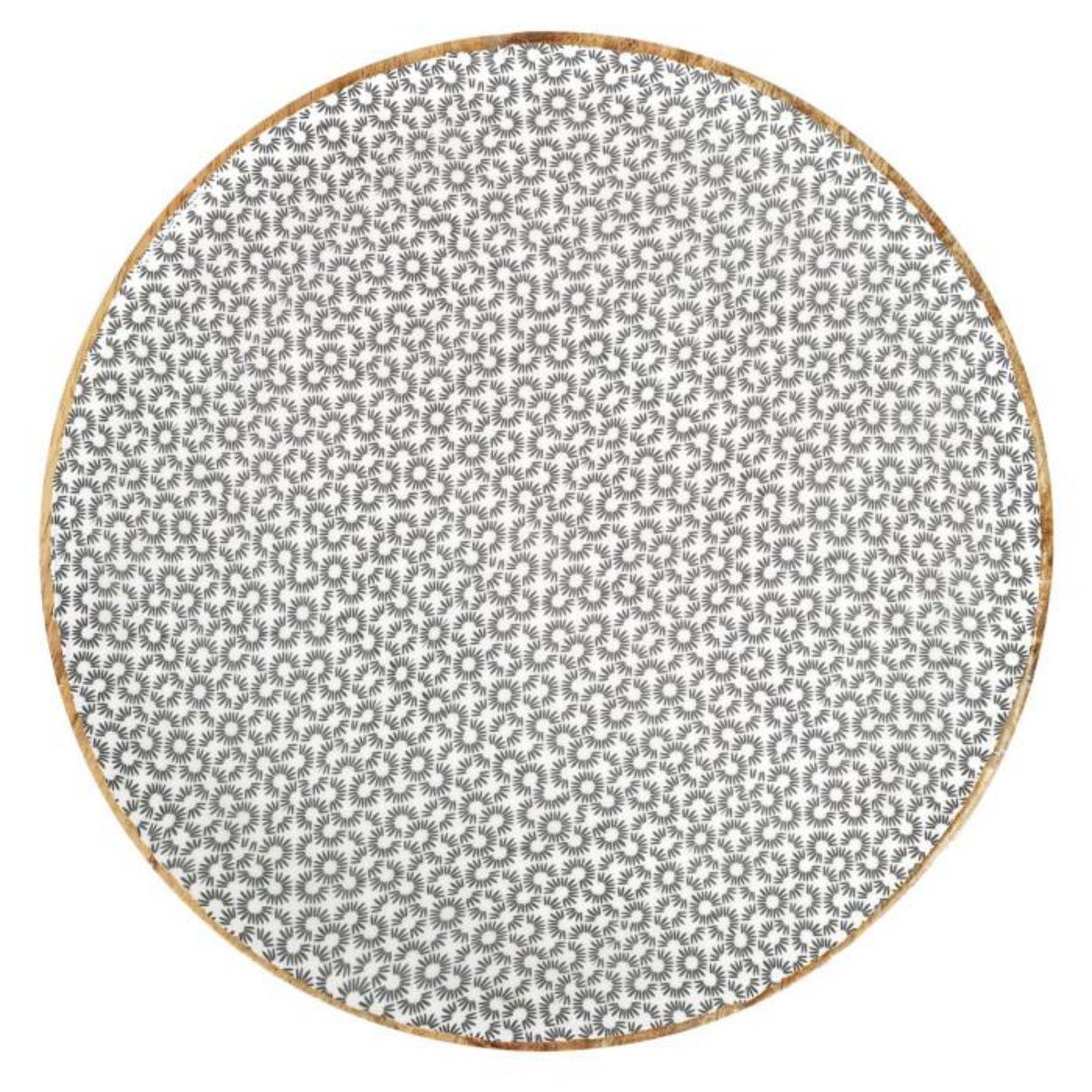 Informations Techniques : Dimensions : D. 35 x H. 2 cm Matières : Bois & Plastique Spécificités : Pratique & Utile Dessous d'Assiette Forme Ronde Imprimé Géométrique Poids : 0,7 kg Couleur : Naturel, Noir & Blanc