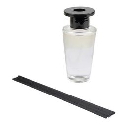 Informations Techniques : Dimensions : Produit packagé : D. 5,8 x H. 22,5 cm Matière : Verre Spécificités : Tendance & Utile Diffuseur de parfum Avec bâtonnets Contenance : 100 ml Senteur : Jasmin Type de fragrance : Florale Forme ronde Poids : 0,22 kg Couleur : Blanc
