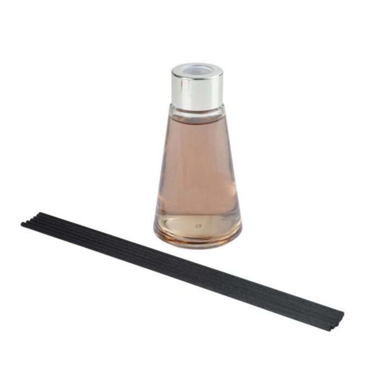 Informations Techniques : Dimensions : Produit packagé : D. 5,7 x H. 22 cm Matière : Verre Spécificités : Tendance & Utile Diffuseur de parfum Avec bâtonnets Contenance : 70 ml Senteur : Opium Type de fragrance : Florale Forme ronde Poids : 0,2 kg Couleur : Marron