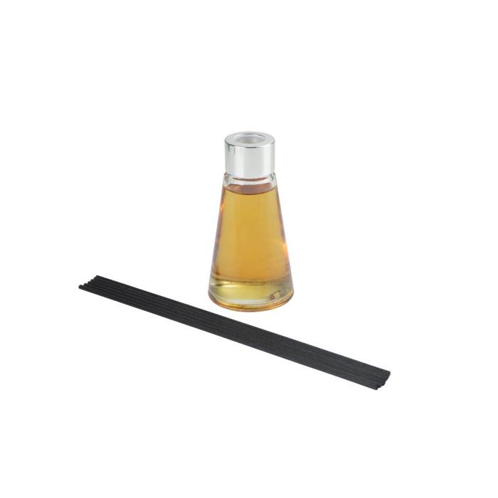 Informations Techniques : Dimensions : Produit packagé : D. 5,7 x H. 22 cm Matière : Verre Spécificités : Tendance & Utile Diffuseur de parfum Avec bâtonnets Contenance : 70 ml Senteur : Orange épicée Type de fragrance : Fruitée Forme ronde Poids : 0,2 kg Couleur : Orange