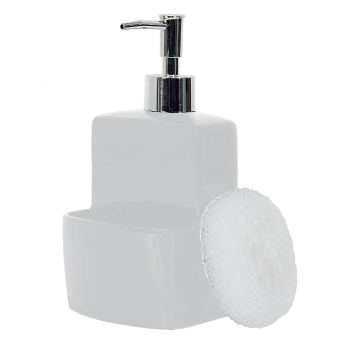 Distributeur de Savon Céramique Porte Éponge 18cm Blanc