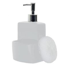 Informations Techniques : Dimensions : L. 9,7 x l. 9,6 x H. 18,5 cm Matière : Grès Spécificités : Pratique & Utile Distributeur de savon Avec porte éponge Poids : 0,54 kg Couleur : Blanc