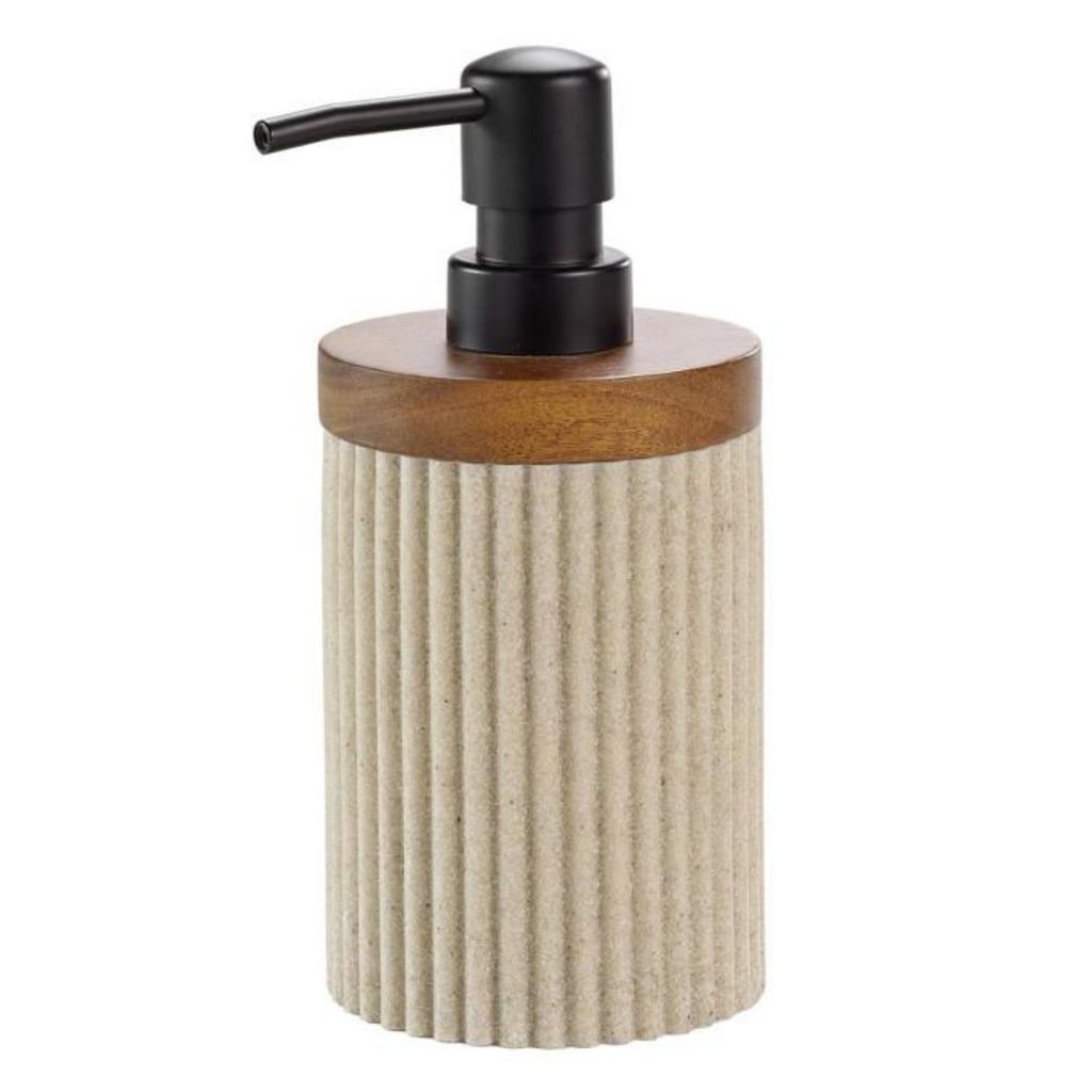 Informations Techniques : Dimensions : D. 8 x H. 17 cm Matières : Polyrésine & Bois (Acacia) Spécificités : Pratique & Moderne Distributeur de savon Design strié Vendu à l'unité Poids : 0,39 kg Couleur : Naturel