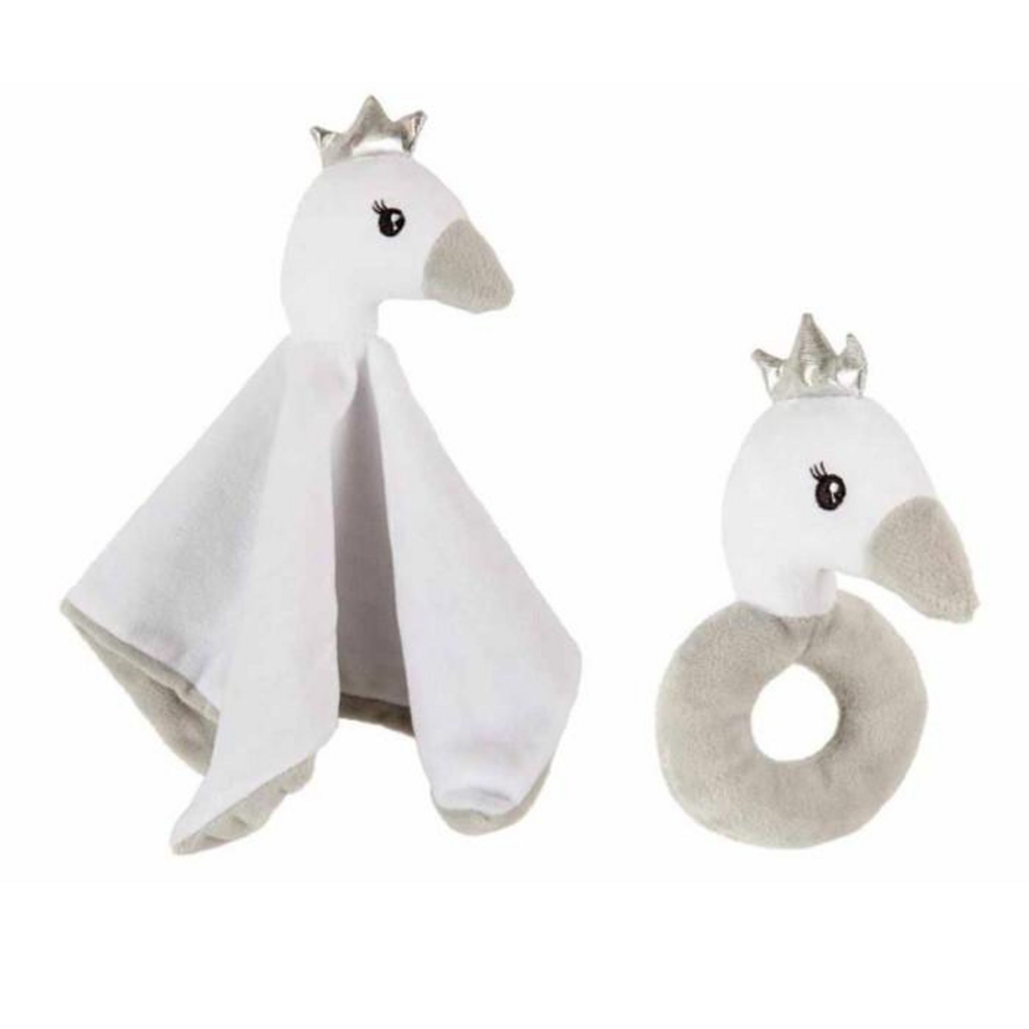 Doudou & Hochet Bébé Cygne 25cm Blanc & Gris