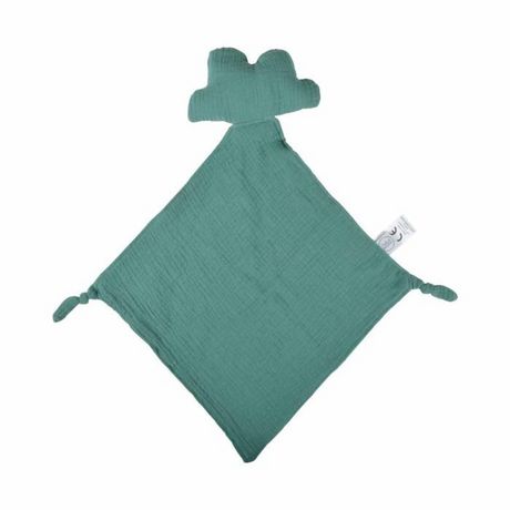 Informations Techniques : Dimensions : L. 30 x l. 46 cm Matière : Gaze de Coton Spécificités : Doux & Agréable Doudou Mouchoir Pour Bébé Forme Rectangulaire Design Nuage Couleur : Vert Foncé