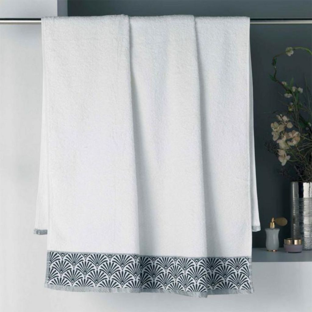 Drap de Bain Coton Jacquard Goldy 90x150cm Blanc & Argent