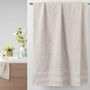 Informations Techniques : Dimensions : L. 90 x l. 150 cm Matière : 100% Coton Spécificités : Doux & Agréable Drap de Bain Forme Rectangulaire Effet Broderie Facile d'Entretien & d'Utilisation Couleur : Lin