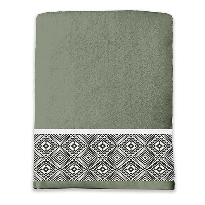 Informations Techniques : Dimensions : L. 130 x l. 70 cm Produit Packagé : L. 27 x l. 4 x H. 41 cm Matières : 100% Coton (450 g/cm2) Liseau : 100% Polyester Spécificités : Design & Pratique Drap de Douche Forme Rectangulaire Texture Eponge Motif Jacquard Poids : 0,43 kg Couleur : Kaki