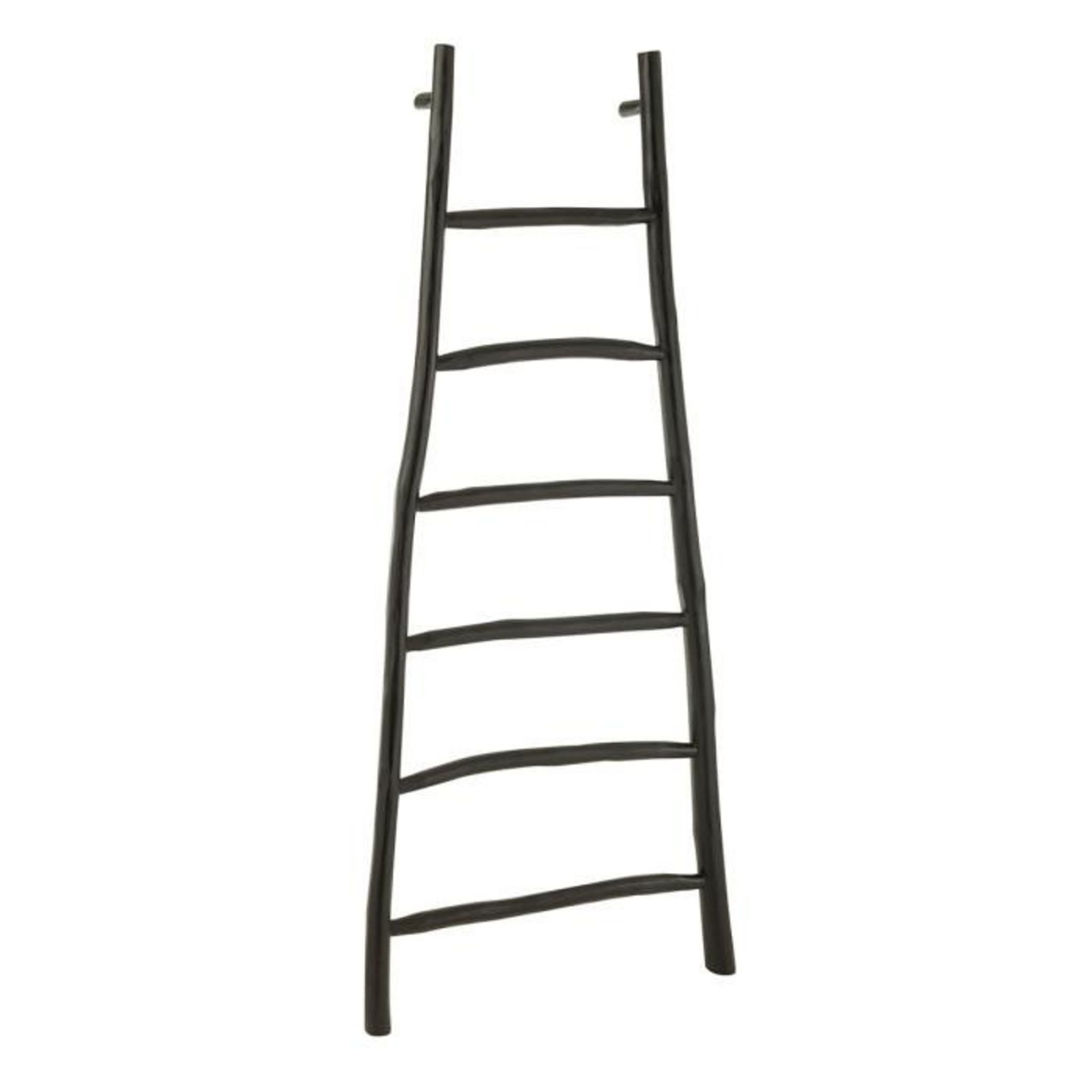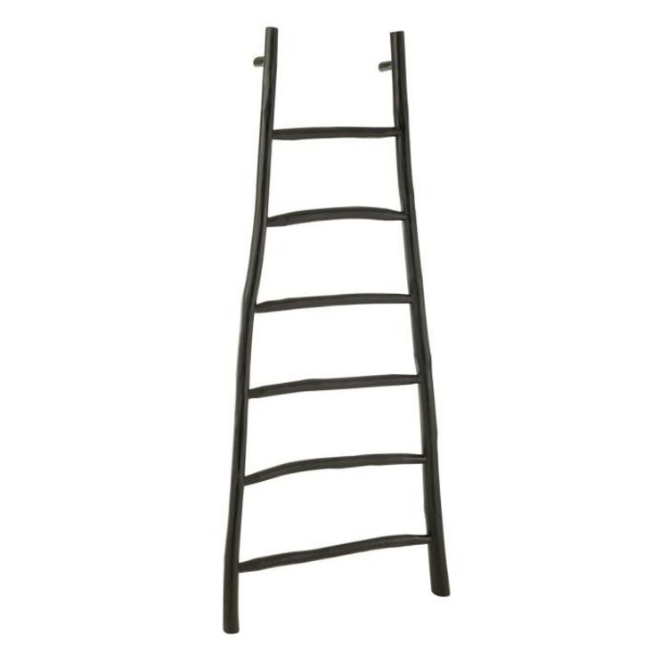 Informations Techniques : Dimensions : L. 81 x l. 12 x H. 185 cm Matière : Bois de teck Spécificités : Fonctionnelle & Esthétique Echelle décorative Avec 6 échelons Capacité de charge maximale : 15 kg Poids : 6,9 kg Couleur : Noir
