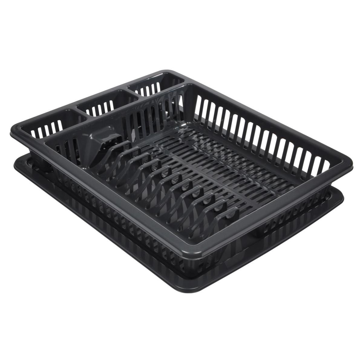 Informations Techniques : Dimensions : L. 45,5 x l. 36 x H. 7,5 cm Matière : Plastique Spécificités : Pratique & Utile Égouttoir avec plateau Forme rectangulaire Poids : 0,51 kg Couleur : Anthracite