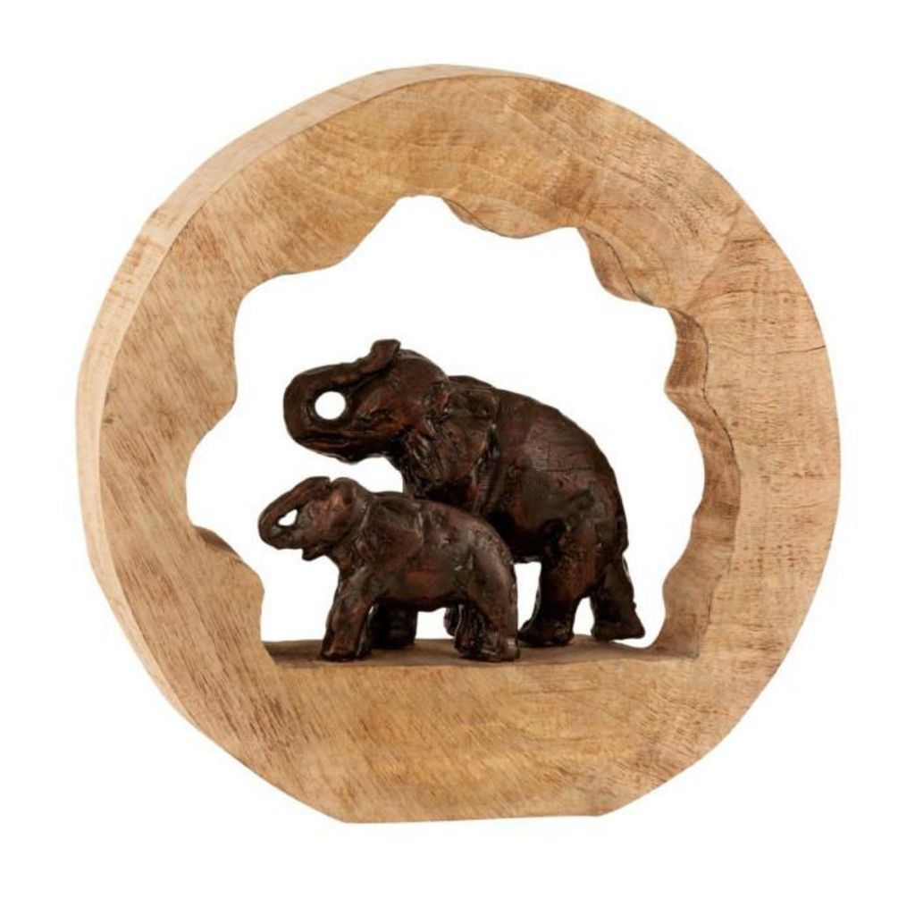Informations Techniques : Dimensions : L. 30 x l. 6,5 x H. 28 cm Matières : Bois (Manguier) & Aluminium Spécificités : Tendance & Pratique Statuette Déco Éléphant avec Enfant Couleur : Bronze & Naturel