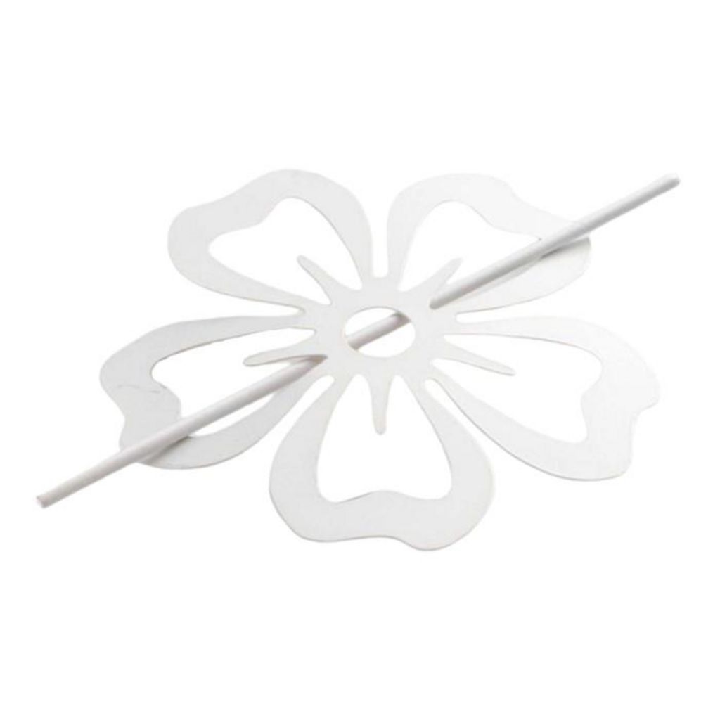 Informations Techniques : Dimensions : D. 15 cm Matière : 100% Fer Spécificités : Design & Pratique En forme de fleur Simple d'utilisation Poids : 0,058 kg Couleur : Blanc