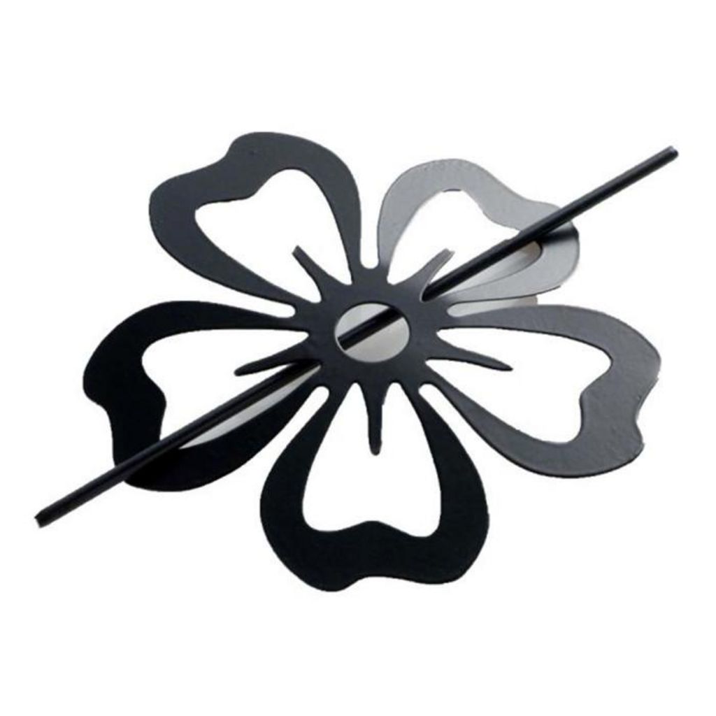 Informations Techniques : Dimensions : D. 15 cm Matière : 100% Fer Spécificités : Design & Pratique En forme de fleur Simple d'utilisation Poids : 0,058 kg Couleur : Noir