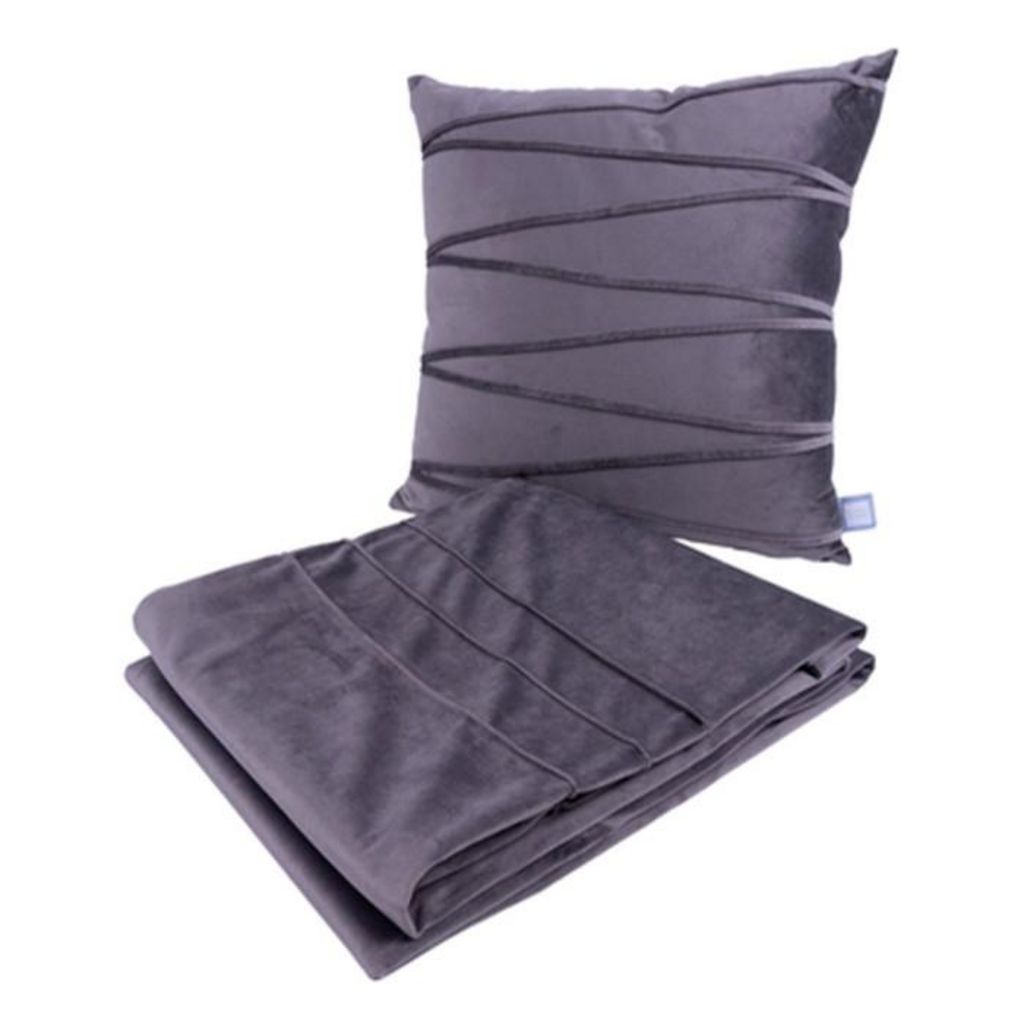 Ensemble Coussin & Plaid Paulina 130x170cm Gris Graphite
