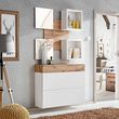 Informations Techniques : Dimensions : L. 100 x l. 30 x H. 190 cm Panneau Mural, 2 Étagères & 2 Miroirs : L. 100 x l. 20 x H. 100 cm Buffet 2 Portes & 1 Tiroir : L. 100 x l. 30 x H. 80 cm Matières : MDF, Verre & Feuilles PVC Spécificités : Cet ensemble contient : 1 x Panneau Mural, 2 Étagères & 2 Mi