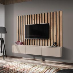 Ensemble Meuble TV à Lattes Verti 180cm Beige