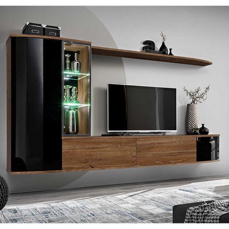 Informations Techniques : Dimensions : L. 255 x l. 40 x H. 130 cm Armoire : L. 45 x l. 40 x H. 130 cm Vitrine : L. 30 x l. 40 x H. 96 cm Meuble TV : L. 210 x l. 40 x H. 34 cm Étagère : L. 180 x l. 25 x H. 2,2 cm Matière : MDF Spécificités : Cet ensemble contient : 1 x Armoire 1 x Vitrine à Led 1 x M