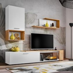 Ensemble Meuble TV Design Maze II 200cm Blanc & Naturel