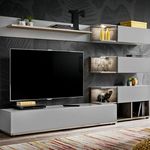 Informations Techniques : Dimensions : L. 240 x l. 40 x H. 150 cm Meuble TV : L. 160 x l. 40 x H. 29 cm Bloc Mural : L. 80 x l. 30 x H. 29 cm Étagère Murale : L. 140 x l. 20 x H. 25 cm Matières : Structure : Panneaux de particules stratifiés d'une épaisseur de 16mm et 22mm Façades : Panneaux de fib