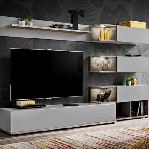 Ensemble Meuble TV Design Silk 240cm Gris & Naturel