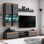 Informations Techniques : Dimensions : L. 175 x l. 37 x H. 150 cm Meuble TV : L. 175 x l. 37 x H. 28 cm Vitrine : L. 30 x l. 28 x H. 100 cm Étagère Murale : L. 98 x l. 16 x H. 15 cm Matière : MDF Cet ensemble contient : 1 x Meuble TV 2 x Vitrines 1 x Étagère Murale Spécificités : Entretien facile