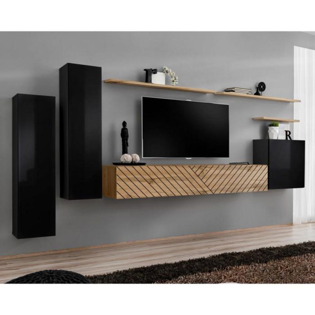 Ensemble Meuble TV Switch Lamel I 330cm Naturel & Noir