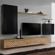 Informations Techniques : Dimensions : L. 270 x l. 40 x H. 160 cm (selon positionnement souhaité) Meuble TV : L. 120 x l. 40 x H. 30 cm Armoire : L. 30 x l. 30 x H. 120 cm Bloc mural : L. 60 x l. 30 x H. 60 cm Étagère 1 : L. 180 x l. 20 x H. 1,8 cm Étagère 2 : L. 60 x l. 20 x H. 1,8 cm Matière : MDF