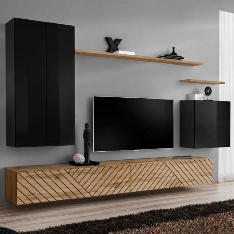 Ensemble Meuble TV Switch Lamel II 270cm Naturel & Noir