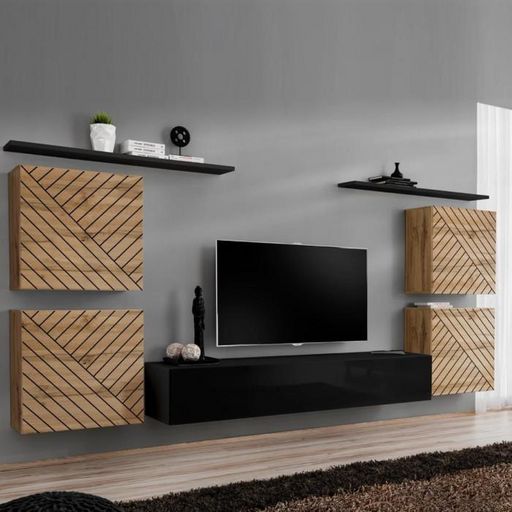 Ensemble Meuble TV Switch Lamel IV 320cm Noir & Naturel