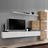 Informations Techniques : Dimensions : L. 310 x l. 40 x H. 200 cm (selon positionnement souhaité) Meuble TV : L. 120 x l. 40 x H. 30 cm Bloc mural : L. 60 x l. 30 x H. 60 cm Etagère murale : L. 180 x l. 20 x H. 1,8 cm Matière : MDF Cet ensemble contient : 2 x Meuble TV 4 x Bloc mural 1 x Étagère mu