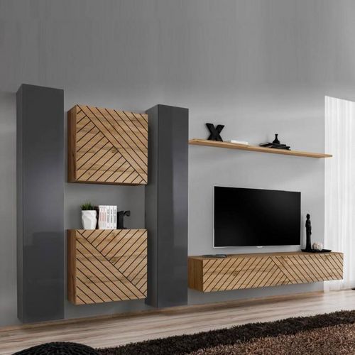 Ensemble Meuble TV Switch Lamel VI 330cm Naturel & Gris
