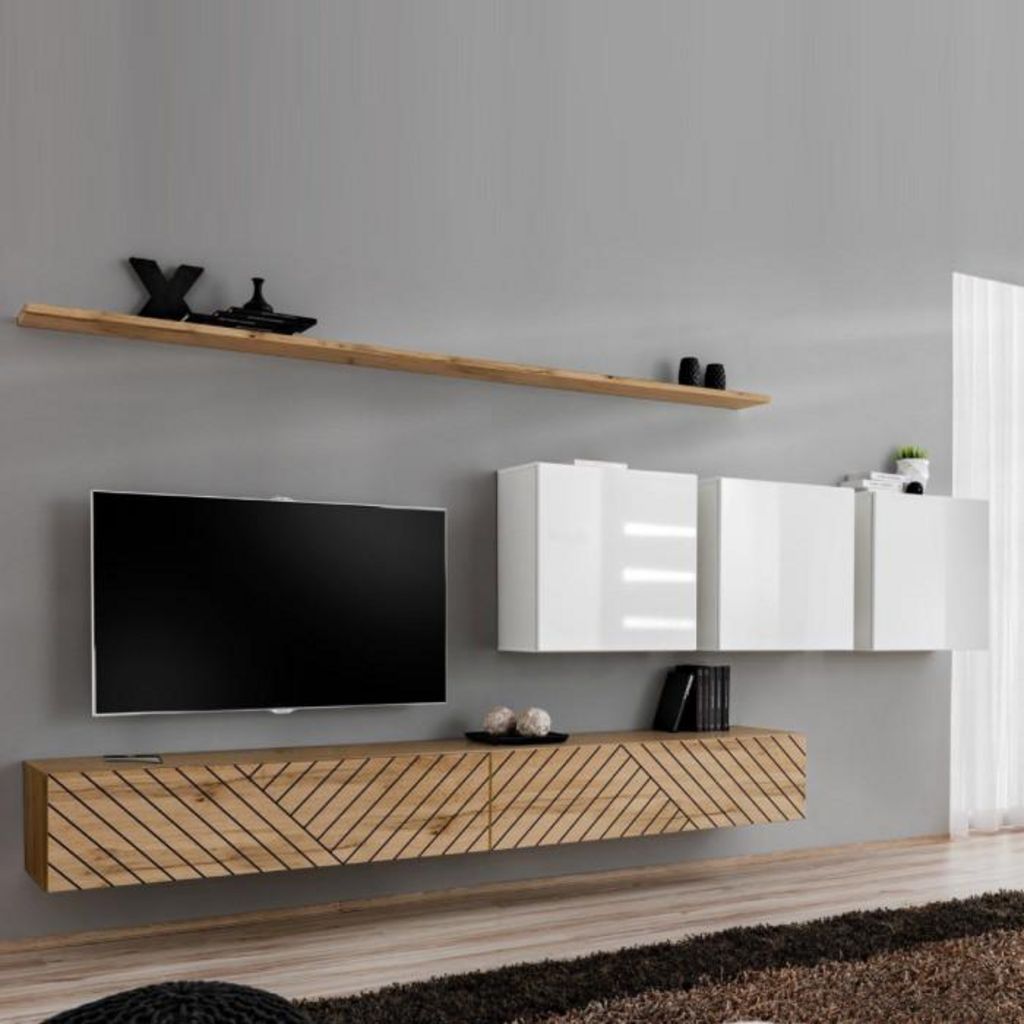 Ensemble Meuble TV Switch Lamel VII 340cm Naturel & Blanc
