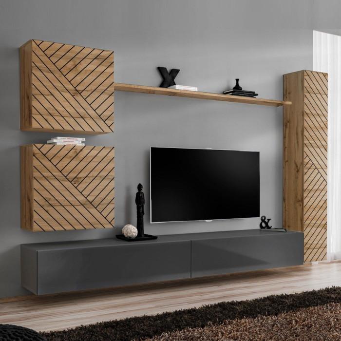 Ensemble Meuble TV Switch Lamel VIII 280cm Gris & Naturel
